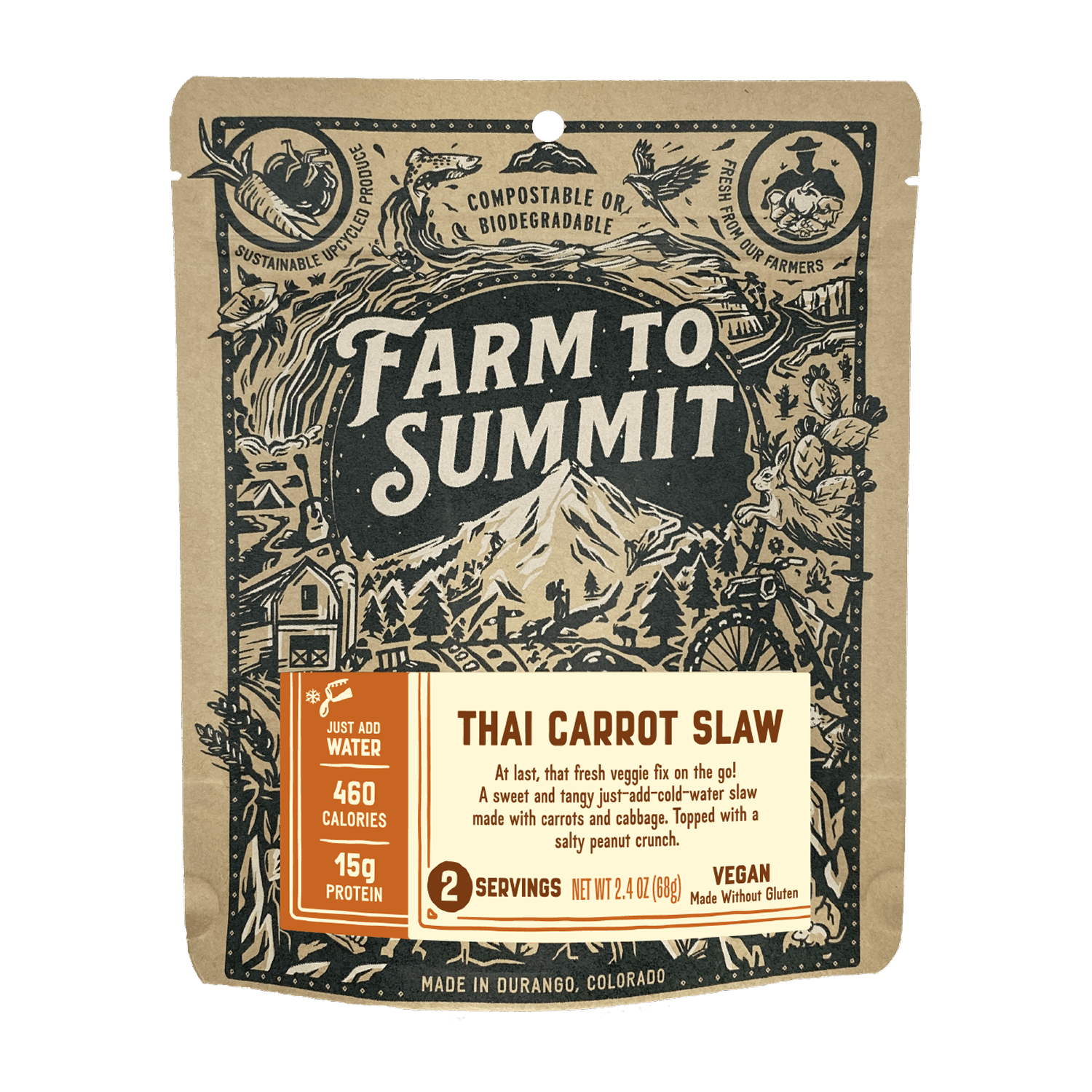 At last, that fresh veggie fix on the go! A sweet and tangy just-add-cold-water slaw made with carrots and cabbage then topped with a peanut crunch.