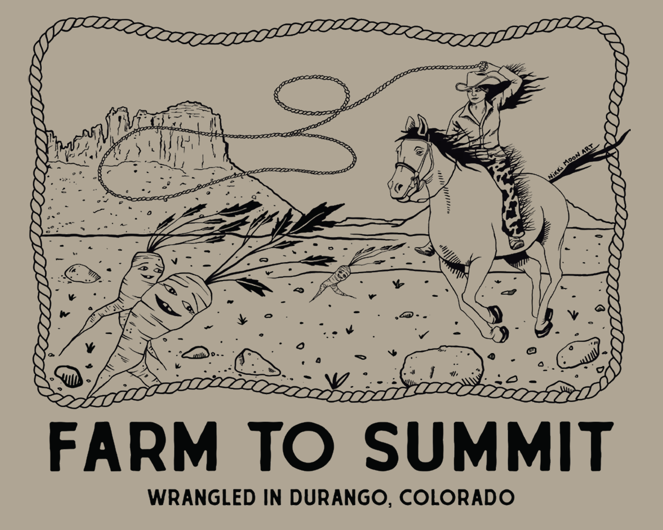 The first of our Artist Series T-Shirts, featuring artwork from Nikki Moon- a Durango based artist who absolutely NAILED it with this design.